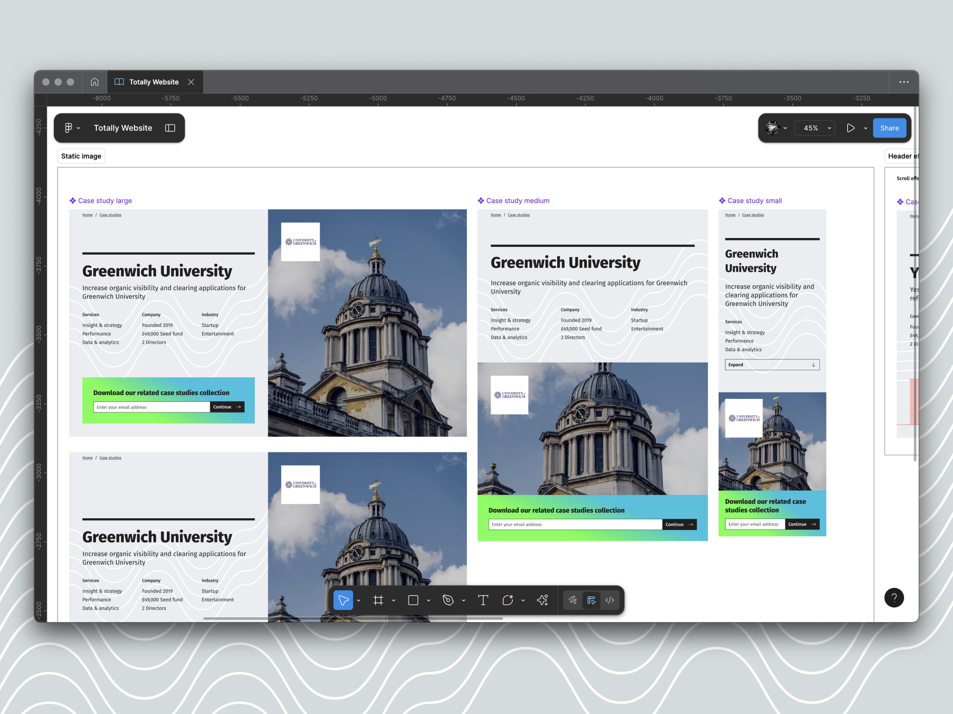 Design System Engineering: I moved beyond static assets to create a living library of reusable components, a meticulously defined colour palette, and consistent graphical treatments. This was specifically engineered to streamline the agency's internal workflow.